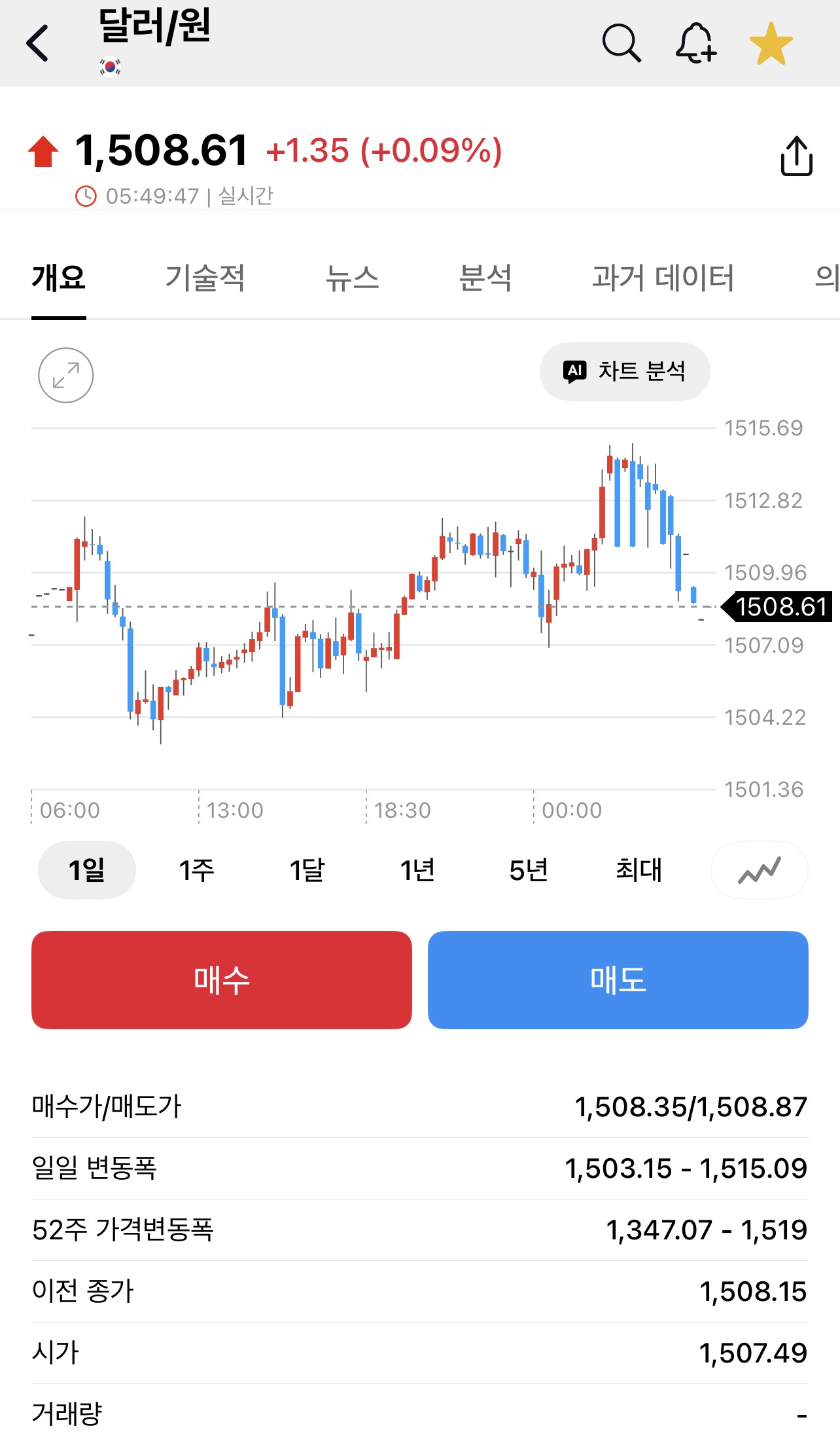 1,515원 까지 찍고 다시 내려온 원/달러 환율.